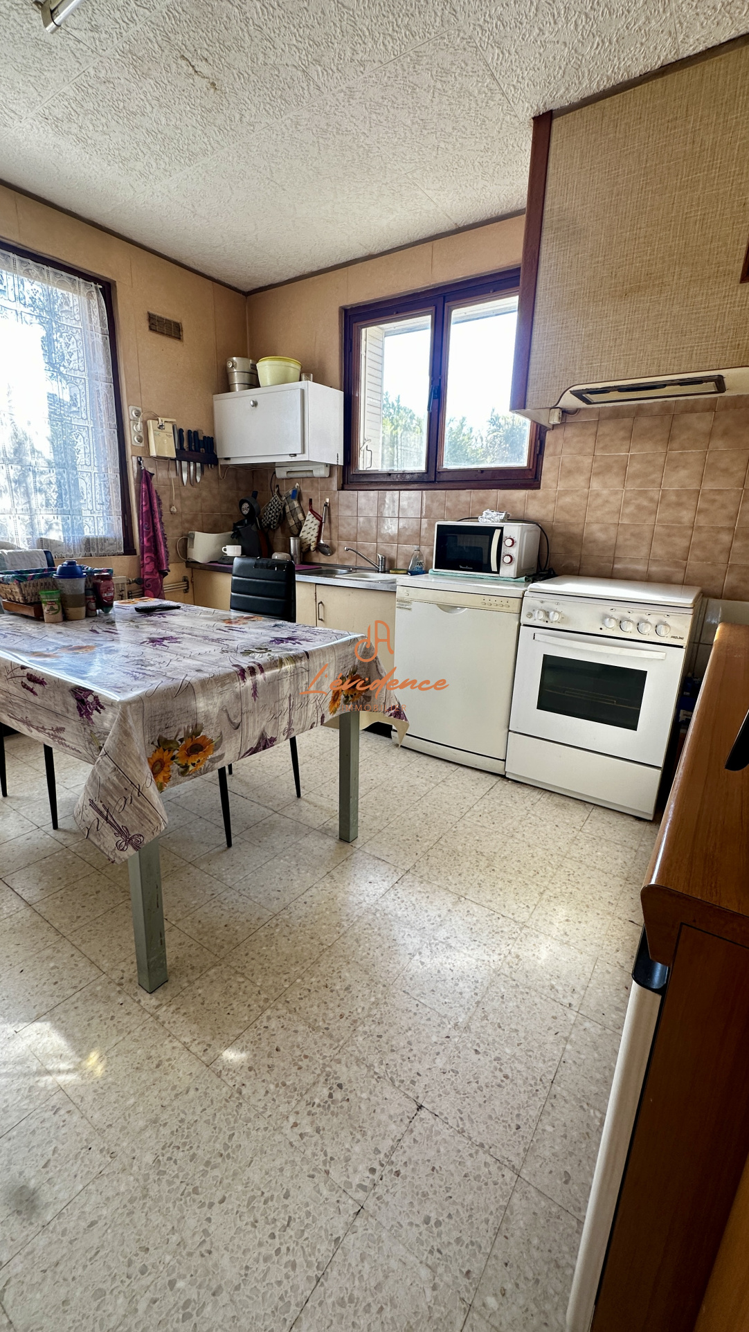 La maison offre un espace de vie de plain-pied, comprenant une cuisine indépendante, un beau séjour lumineux, ainsi que deux chambres, parfait pour profiter d’un cadre de vie agréable au quotidien.
